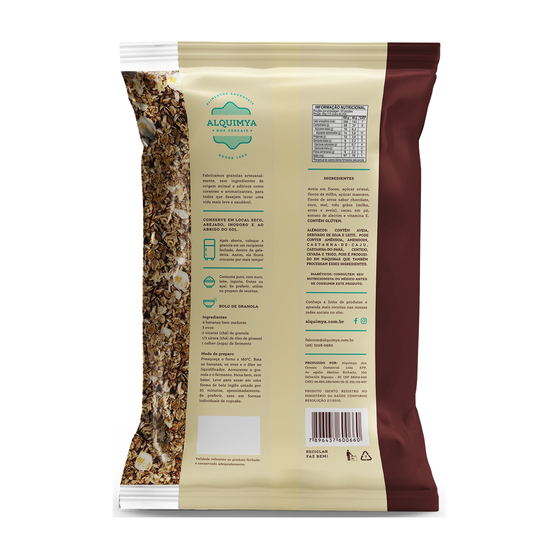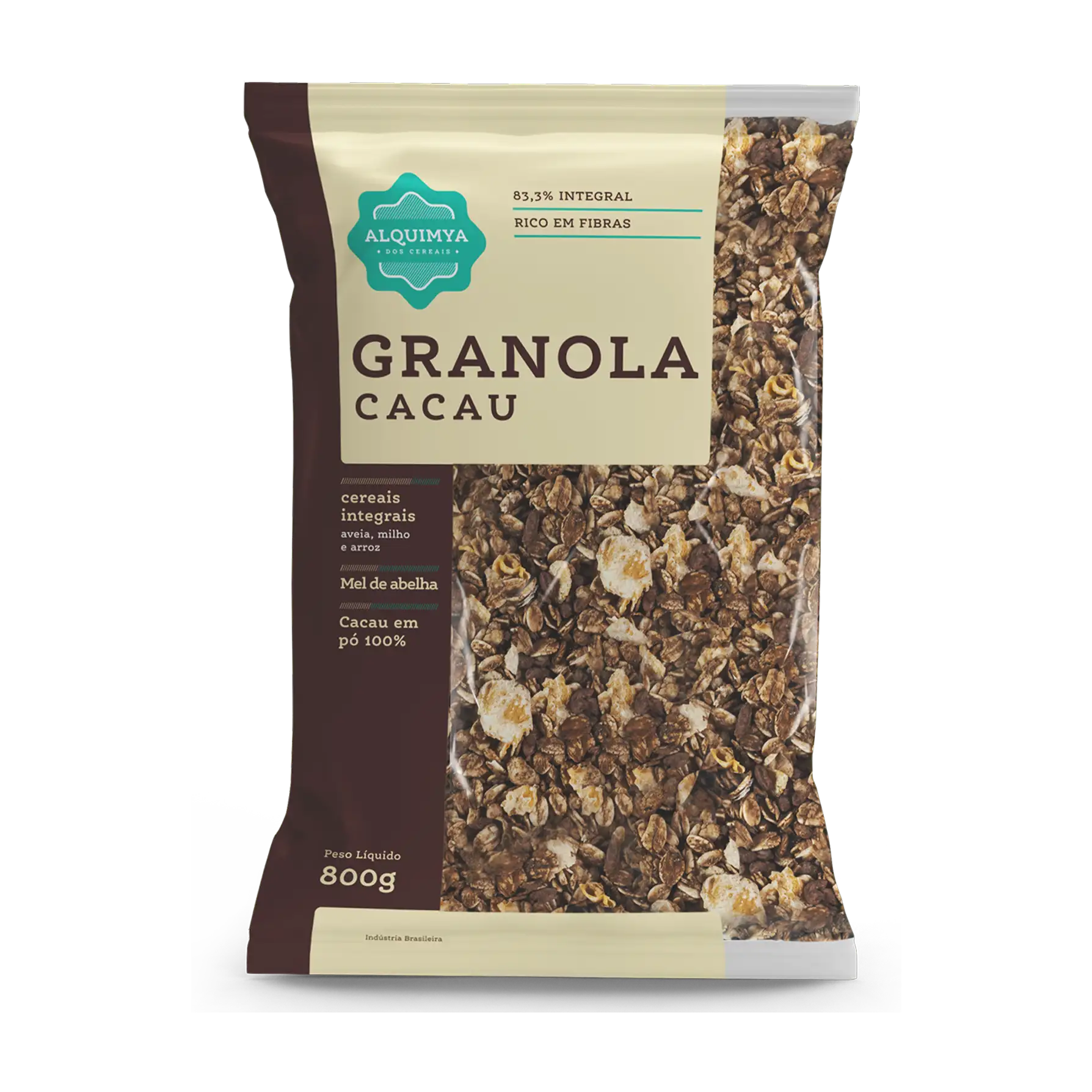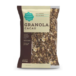 A Granola Cacau Alquimya foi criada para quem não abre mão de um sabor intenso aliado à nutrição equilibrada. Produzida a partir de cereais integrais, ela ganha o toque especial do cacau, que proporciona notas encorpadas e uma experiência única de sabor. Fonte natural de fibras, auxilia no bom funcionamento intestinal, promove saciedade e contribui para o equilíbrio alimentar ao longo do dia.